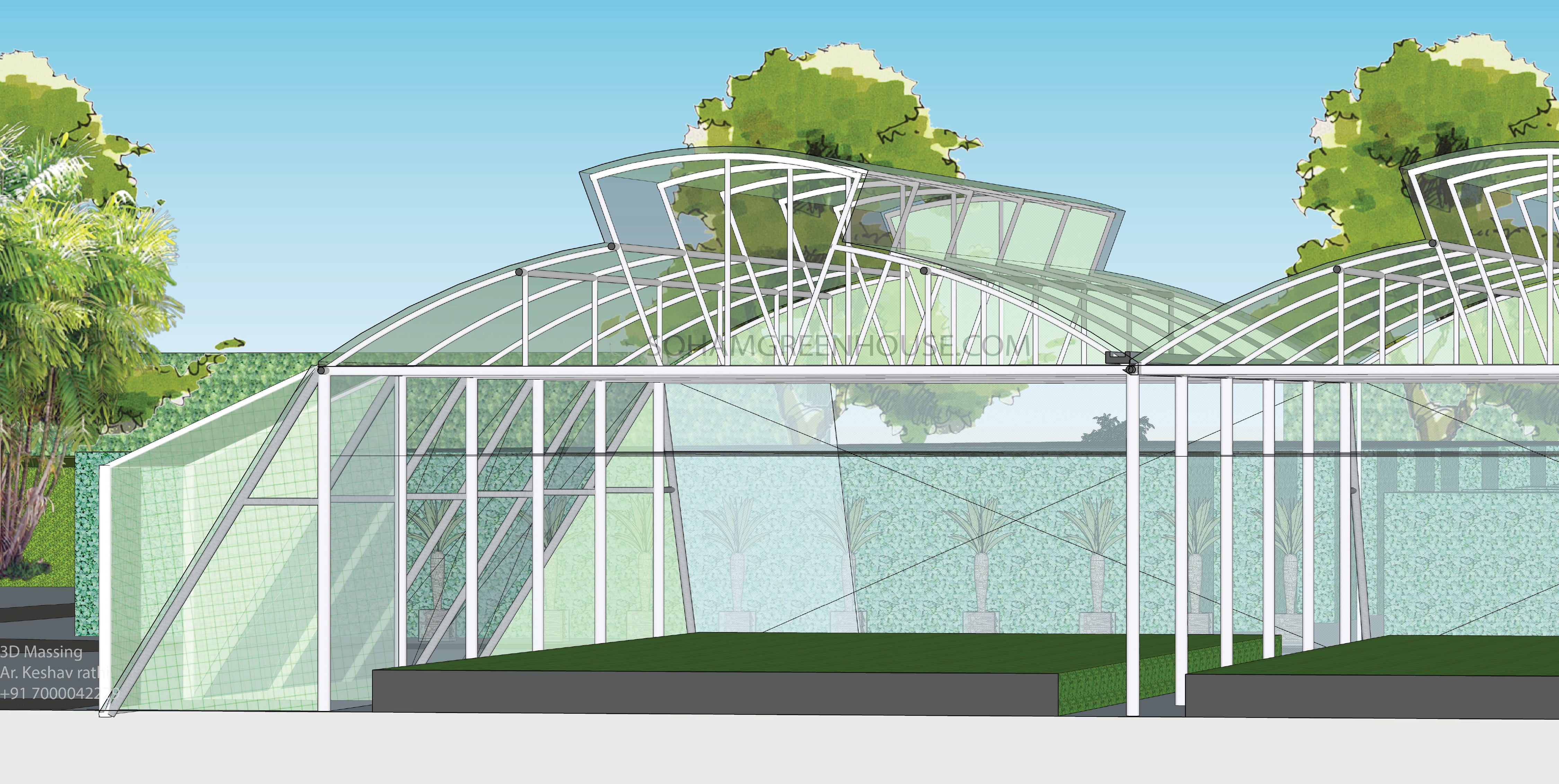 The greenhouse is shaped in such a way so as to minimize the impact of heavy winds and maximize the strength of the structure. The shape is given to drift away the wind flow.